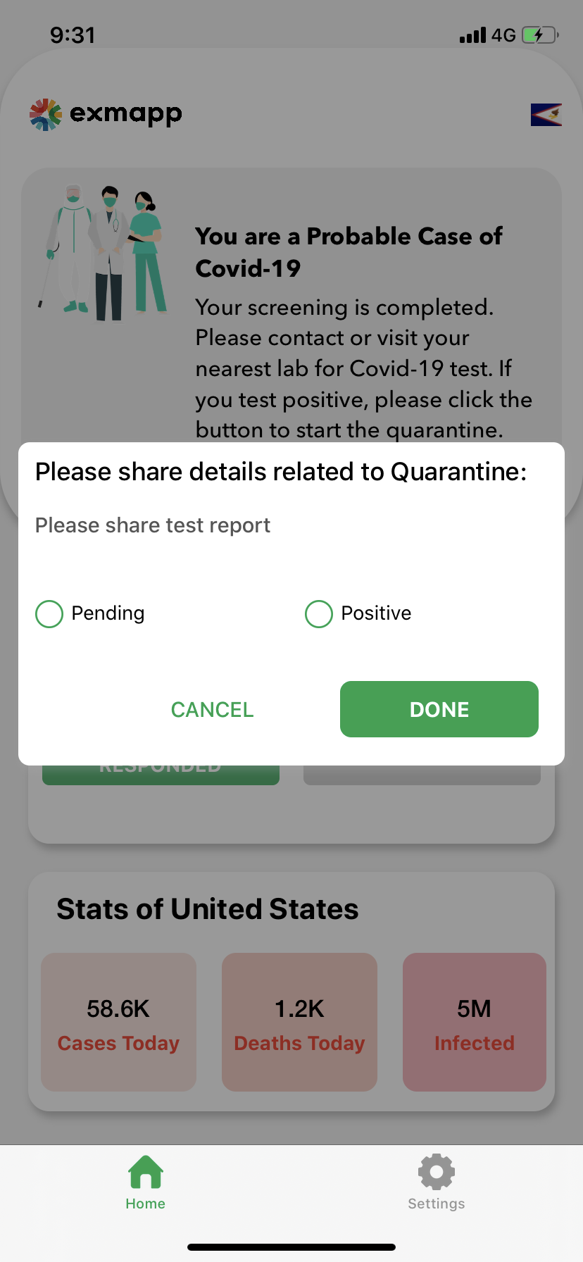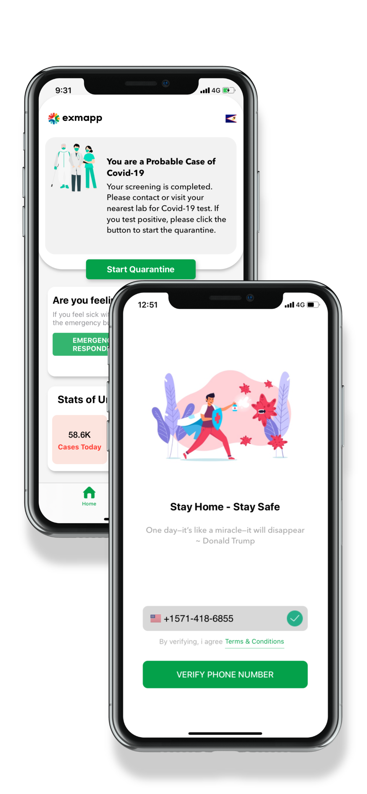 The Exposure Monitor App (Exmapp) is a smartphone based app that facilitates the case management of individuals affected by COVID-19. This case management App facilitates the identification/elicitation and documentation of individuals who contract COVID-19 along with their known contacts. It captures the relevant demographic data and ongoing health status changes of these individuals in almost real-time. It allows for almost real-time communication between affected individuals and the Public Health Care (PHC) team.