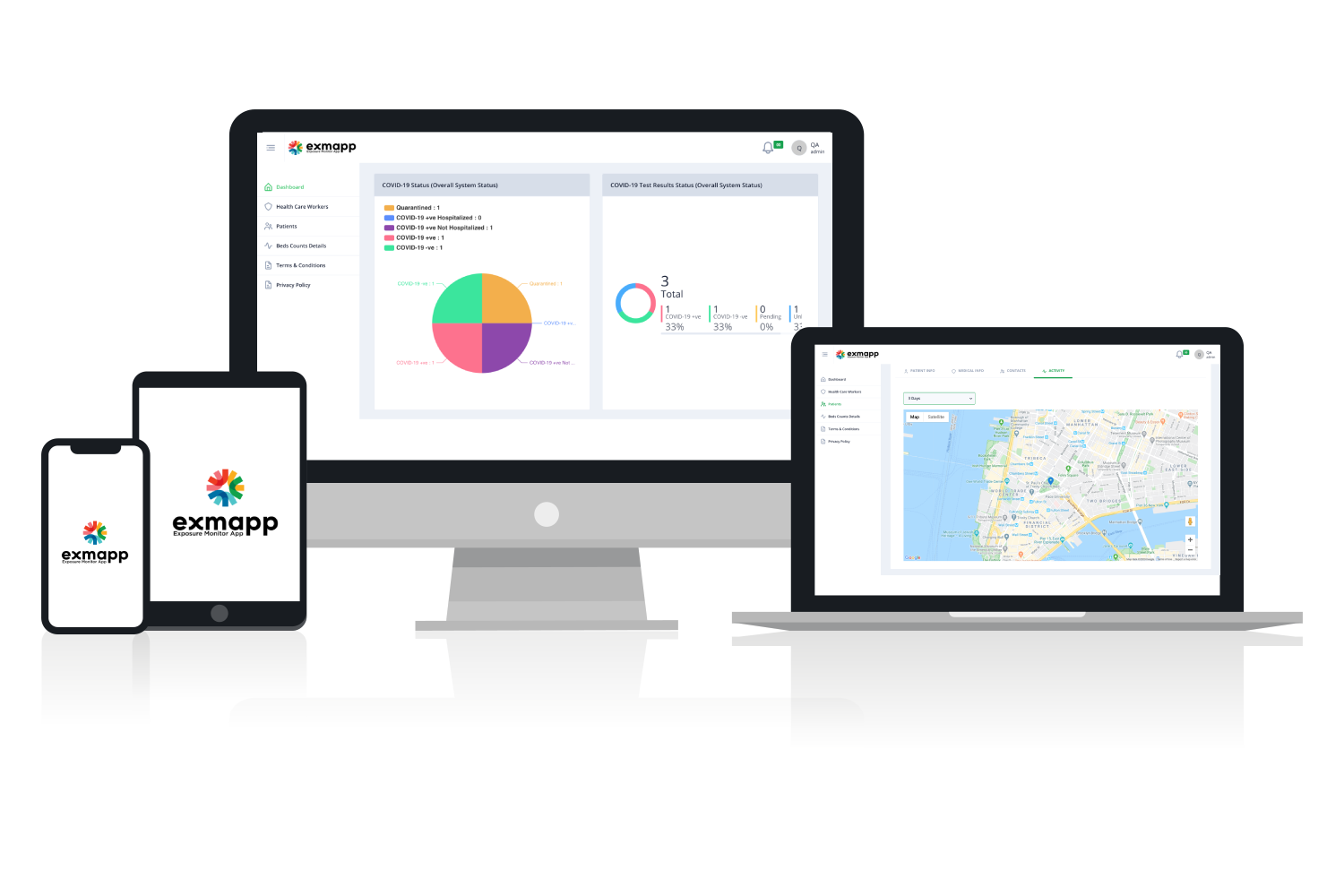 The Exposure Monitor App (Exmapp) create a communication and monitoring channel between COVID-19 patients and PHC workers to manage patients in self quaratine. It also allows PHC workers and authorities to analyze the transmission of virus through contact tracing and stats.